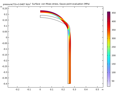 پارامترهای ماده، F  =  G  =  2.47 · 10 – 18  1 / Pa 2 و H  =  4.42 · 10 – 18  1 / Pa 2 ، شروع تحلیلی تسلیم را در مرکز سیلندر در p  =  37.8  مگاپاسکال نشان می دهد. با توجه به انحنای بند انگشت، مواد موجود در سر توریسفریک زیر این فشار شروع، دچار تغییر شکل پلاستیکی میشوند.