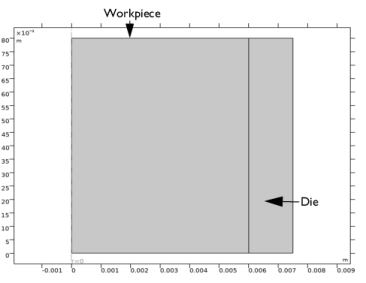 هندسه قطعه کار (پودر دارویی) و قالب در شکل 1 نشان داده شده است . فرآیند فشرده سازی واقعی به دو پانچ نیاز دارد: یک پانچ ثابت پایین و یک پانچ متحرک بالا. پانچ ها به صراحت مدل سازی نشده اند. پانچ پایین ثابت به عنوان یک جابجایی محوری ثابت در مرز پایین قطعه کار مدلسازی میشود و پانچ متحرک بالایی با یک تغییر مکان در جهت محوری مدلسازی میشود. از آنجا که قالب در مقایسه با پودر سفت و سخت است، به طور واضح مدل سازی نشده است. به دلیل تقارن محوری، می توان اندازه مدل را کاهش داد.