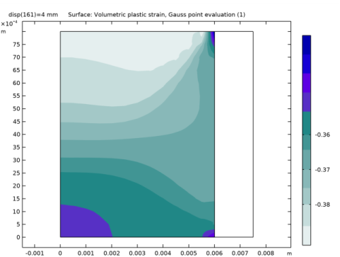 واضح است که قوانین سخت شدن در Ref. 1 و در COMSOL متفاوت است. پارامترهای قانون سخت شدن K iso و ε p vol,max به گونه ای انتخاب می شوند که شبیه منحنی قانون سخت شدن است که در Ref. 1 . محل اولیه کلاهک p b0 با استفاده از مقادیر p a0 ، J a0 و R مشخص می شود .