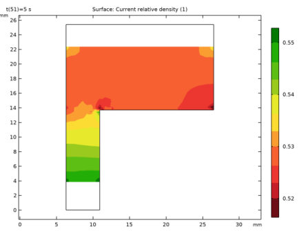 شکل 7: چگالی نسبی جریان در انتهای تراکم.