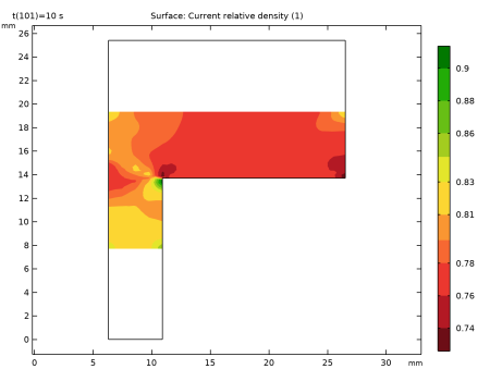 فرآیند تراکم باعث کاهش تخلخل پودر آهن و افزایش چگالی آن می شود. این فرآیند همچنین منجر به افزایش استحکام قطعه می شود. با توجه به نوع هندسه و بارگذاری، تغییرات غیر یکنواخت در تخلخل انتظار می رود. خطوط چگالی نسبی جریان در وسط و انتهای تراکم به ترتیب در شکل 6 و شکل 7 نشان داده شده است . پودر فلز در قسمت پایین نازک قطعه کار فشرده تر از مواد موجود در قسمت میانی یا بالایی است. در گوشه ها، پودر فلز به دلیل اثرات اصطکاک کمتر فشرده می شود. رجوع کنید به رفر. 2 . توجه داشته باشید که چگالی نسبی ارائه شده در Ref. 1 و رفر. 2به دلیل مدل های مختلف مواد الاستوپلاستیک و خواص مواد دقیقاً با یکدیگر مطابقت ندارند، اما روند مشابهی را نشان می دهند. در امتداد همین خط، نتایج ارائه شده در مثال فعلی همان روند Ref را نشان می دهد. 1 و رفر. 2 ، و همچنین در فاصله نزدیک با آنها هستند.