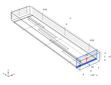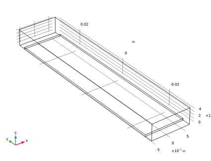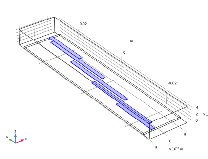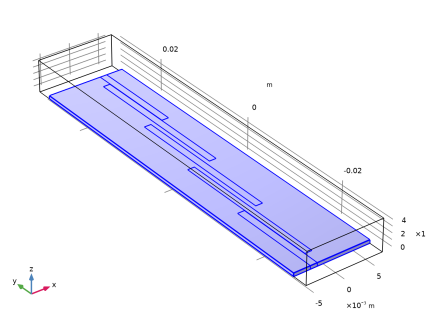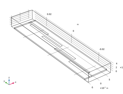 خطوط ریز نوار هر یک به عنوان سطوح رسانای الکتریکی کامل (PEC) روی یک بستر دی الکتریک 0.020 اینچی با ضخامت 0.020 اینچ مدل‌سازی می‌شوند و سطح PEC دیگری در زیر آن به عنوان صفحه زمین عمل می‌کند. کل دامنه مدل‌سازی با مرزهای PEC محدود می‌شود که نشان‌دهنده بسته‌بندی است.