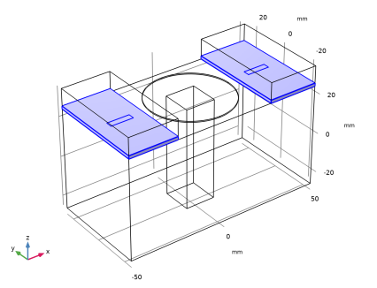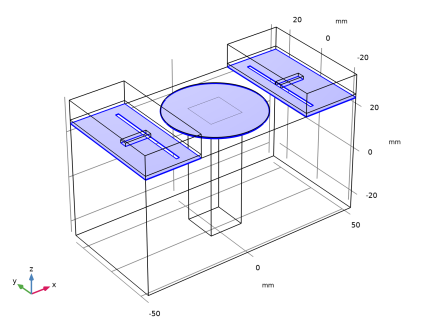 این مثال از رابط چندفیزیکی داخلی پیزوالکتریک استفاده می کند که رابط های مکانیک جامد و الکترواستاتیک را از طریق گره اثر پیزوالکتریک واقع در زیر شاخه Multiphysics جفت می کند. دیگر رابط های فیزیکی مورد استفاده عبارتند از: متحرک مش و امواج الکترومغناطیسی، دامنه فرکانس. یک مطالعه ثابت برای رابط های مکانیک جامد، الکترواستاتیک و مش متحرک، و مطالعه دامنه فرکانس برای رابط امواج الکترومغناطیسی استفاده می شود.