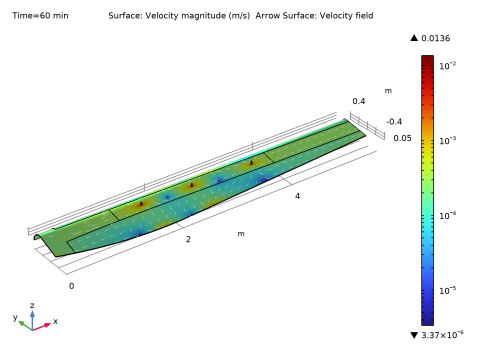 این مدل با استفاده از رابط ترکیبی چند فیزیک دو فاز، مجموعه سطح، معادلات برینکمن تنظیم شده است.