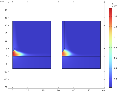 این مدل بر اساس کار ارائه شده در Ref. 1 . در Ref. 1 نویسندگان یک مدل پیچیده را توسعه می دهند که شامل توصیف حوضچه جوش تحت عمل یک قوس پالسی است. در این کار فقط پلاسما و انتقال گرما و جریان در فلزات بدون توجه به حوضچه جوش شبیه سازی شده است. این مدل با باز کردن یک مدل از یک قوس DC شروع می شود که از راه حل به عنوان شرایط اولیه برای مسئله وابسته به زمان استفاده می شود.