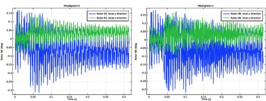 کج شدن روتور در یاتاقان در شکل 8 برای موارد تراز و ناهمتراز مقایسه شده است. دستورالعمل های زیر را برای بازتولید این طرح دنبال کنید.