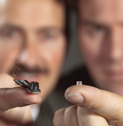 شکل 2: لنز فوکوس متغیر مینیاتوری و دوربینی که برای نگهداری آن ساخته شده است. عکس: فیلیپس.