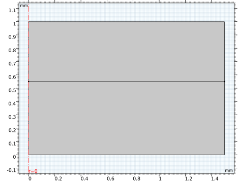 این مدل شامل یک محفظه مهر و موم شده با شعاع 1.5 میلی متر است که با دو مایع غیرقابل اختلاط پر شده است. از آنجایی که هندسه استوانه ای است، می توان از هندسه متقارن محوری نشان داده شده در شکل 3 استفاده کرد.