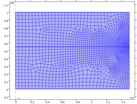 عناصر چهار ضلعی برای مش استفاده می شوند زیرا معمولاً سفت تر هستند و بنابراین نسبت به عناصر مثلثی نسبت به عناصر معکوس کمتر حساس هستند. مش نیز در نقطه تماس مقیاس بندی می شود تا دقت شبیه سازی بهبود یابد.