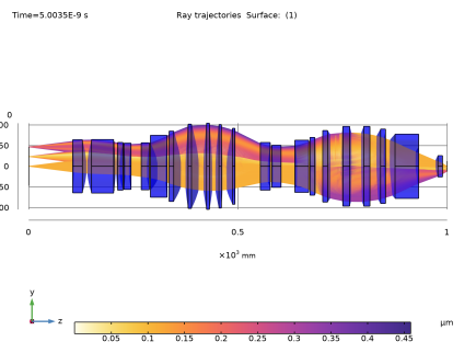 این آموزش نشان می دهد که چگونه می توان شبیه سازی اپتیک هندسی را در یک لنز میکرولیتوگرافی سیلیس ذوب شده 21 عنصری با دیافراگم عددی (NA) 0.56، برای استفاده در طول موج 248 نانومتر (لیزر KrF) انجام داد. این لنز که طول کلی آن 1 متر است، دارای بزرگنمایی 0.25- با کیفیت تصویر عالی در یک دایره تصویری 23.4 میلی متری است.