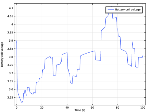 این نرم افزار نشان می دهد که چگونه یک سلول باتری در معرض چرخه رانندگی خودروهای الکتریکی هیبریدی را می توان با استفاده از رابط باتری لیتیوم-یون در COMSOL بررسی کرد.