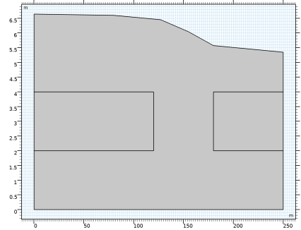 سر هیدرولیک در x =  250  متر مشخص شده است. برای مدل سازی شارژ مجدد 10  سانتی متر بر الف این سرعت در مرز بالایی مشخص شده است.
