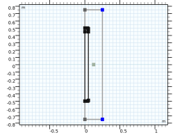 تا کنون، هندسه حول مبدا سیستم مختصات ساخته شده است. از آنجایی که صفحه تقارن در x = 0 قرار خواهد گرفت ، میله باید Rd/2 متر در جهت x مثبت جابجا شود . توجه داشته باشید که پارامتر Rd به شما امکان میدهد فاصله بین میلهها را تغییر دهید ( میتوانید نیروی محاسبهشده را به عنوان تابعی از Rd بعداً بررسی کنید ).