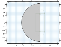 صفحه کار بعدی برای ساختن یک نیمکره استفاده می شود. در مدل راستیآزمایی BEM FEM نیروی مغناطیسی ، این نیمکره مرز بین رابط میدانهای مغناطیسی ، بدون جریان ، و رابط میدانهای مغناطیسی ، بدون جریان، عناصر مرزی ۲ را نشان میدهد .