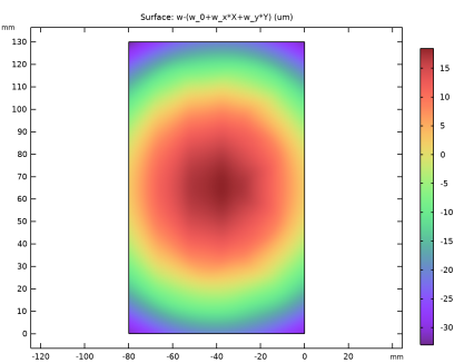 جابجایی مطلق به خودی خود مهم نیست، زیرا فقط تابعی از نحوه اعمال محدودیت های بدنه صلب است. در عوض، میخواهید ببینید که مرز چقدر از مسطح بودن منحرف میشود. برای نمایش آن، با استفاده از برازش حداقل مربعات، یک تقریب خطی از تغییر شکل ایجاد کنید. سپس، انحراف از آن صفحه را ترسیم کنید.