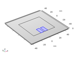 فرکانس شبیه سازی به اندازه کافی بالا نیست که بتوان اتلاف ناشی از رسانایی محدود لایه های مس را در نظر گرفت. تمام مرزهای فلزی با استفاده از هادی الکتریکی کامل (PEC) تعریف می شوند. بستر دی الکتریک 60 میل بدون تلفات فرض می شود و گذردهی نسبی، ثابت دی الکتریک ماده در این مدل 3.38 است.
