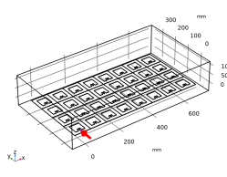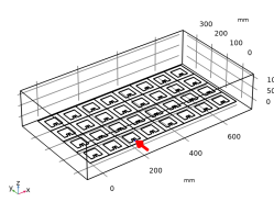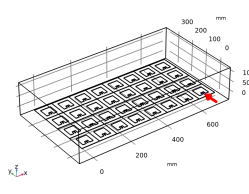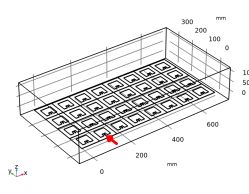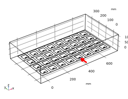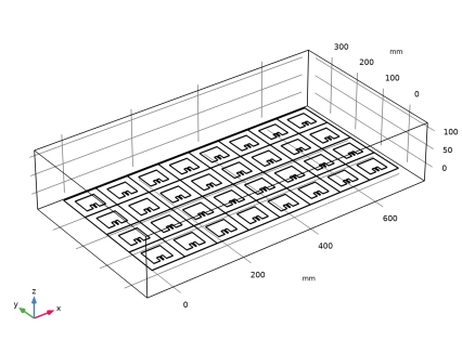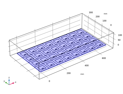 هندسه آرایه آنتن کامل با عملکرد قطعه و آرایه سفارشی ساخته شده است. بستر آرایه توسط یک حوزه هوای اطراف محصور شده است. تمام عناصر آنتن توسط پورت های توده ای با همان ولتاژ پیش فرض و امپدانس مرجع 50 Ω تحریک می شوند . مقادیر فاز حسابی برای هدایت جهت تابش اصلی استفاده می شود.