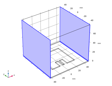 یک شرط مرزی رسانای الکتریکی کامل (PEC) به طور پیش فرض برای مرزهای بیرونی حوزه شبیه سازی اعمال می شود. در این مدل، آن شرط مرزی توسط یک شرط مرزی پراکندگی مرتبه اول لغو می شود. شرایط مرزی پراکندگی تمام تشعشعات خروجی از آنتن را جذب می کند.