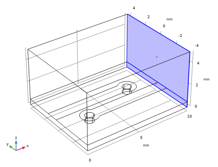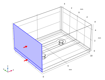یک شرط مرزی پورت از نوع الکترومغناطیسی عرضی (TEM) در هر طرف دامنه مدل مکعبی که خط میکرو نوار و صفحه زمین را لمس میکند، استفاده میشود. پورت نوع TEM با افزودن پتانسیل الکتریکی و ویژگی های فرعی زمین تکمیل می شود. لبه خط بالای خط میکرواستریپ در مرز پورت TEM روی پتانسیل الکتریکی تنظیم شده است در حالی که لبه صفحه زمین در مرز پورت TEM روی زمین تنظیم شده است. مواد بالای صفحه مدار هوا است.