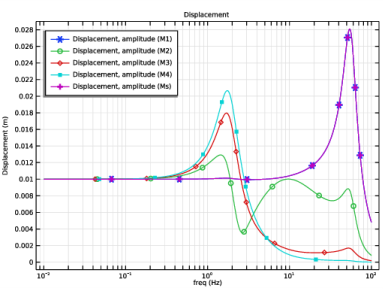 | 5 | در نوار ابزار Displacement, Amplitude (lms) 1 ، روی   Plot کلیک کنید . |