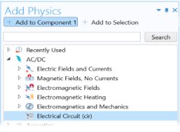 به پنجره Add Physics بروید. در درخت زیر AC/DC، روی Electrical Circuit (Cir) کلیک کنید