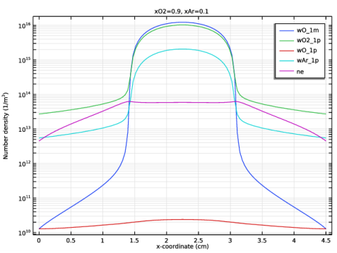 این آموزش یک راکتور پلاسما کوپل شده خازنی آرگون/اکسیژن را به صورت 1 بعدی مدل می کند. هدف این است که نشان دهیم چگونه می توان مدلی با مخلوطی از عناصر مختلف (در این مورد Ar و O 2 ) تهیه کرد که در آن یکی از گونه ها می تواند با برخورد الکترون تفکیک شود (O 2 به O تجزیه می شود) و جایی که یون های منفی وجود دارد ( اتصال الکترون تجزیه ای O 2 O  را ایجاد می کند .
