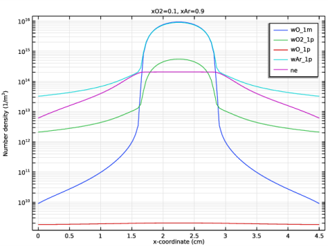 در نوار ابزار Charged Species Number Density، Period Averaged، xO2=0.1 ، روی  Plot کلیک کنید .