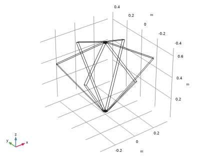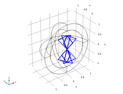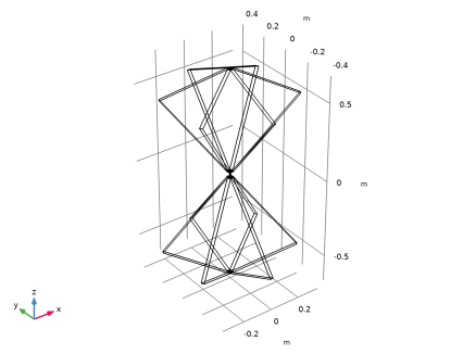 آنتنهای دو مخروطی برای اندازهگیری فرکانس بسیار بالا (VHF) محبوب هستند زیرا محدوده فرکانس وسیعی را پشتیبانی میکنند. آنها همچنین برای آزمایش سازگاری الکترومغناطیسی (EMC) مفید هستند که در آن آنتن می تواند به عنوان منبع RF در تست حساسیت یا ایمنی استفاده شود. این مثال یک آنتن دو مخروطی ساخته شده از قاب های شش ضلعی سبک را شبیه سازی می کند که برای ساخت بر مخروط های جامد ترجیح داده می شود. شبیهسازی شامل محاسبه الگوی تابش میدان دور و نسبت موج ایستاده ولتاژ (VSWR) است.