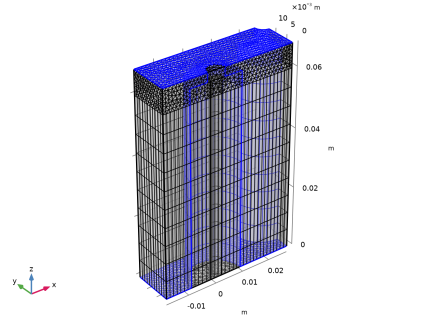 مدل حرارتی به صورت سه بعدی با استفاده از رابط انتقال حرارت در جامدات و سیالات ساخته شده است.