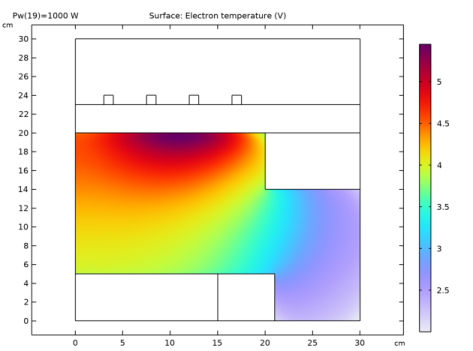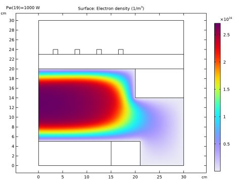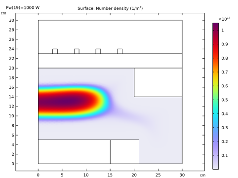 مدل پلاسما به طور خودسازگار با رابط های جریان آرام و انتقال حرارت در سیالات حل می شود . یک مرحله مطالعه فرکانس-ایستا برای انجام پارامترسازی سریع در توان ورودی و کسر مولی اکسیژن استفاده میشود.