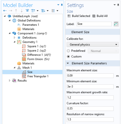 کد زیر نمونه ای را نشان می دهد که در آن پارامترهای مش سراسری تغییر کرده اند model.mesh(“mesh1”).automatic(false); // Turn off Physics-controlled mesh