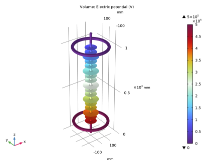 1 | در پنجره Model Builder، روی Electric Potential, Revolved Geometry (es) 1 کلیک کنید. |