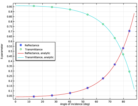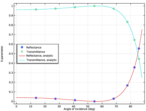 برای مقایسه، Ref. 1 و رفر. 2 عبارات تحلیلی را برای بازتاب و عبور ارائه می دهد 1 . ضرایب بازتاب و انتقال برای قطبش s و قطبش p به ترتیب به این صورت تعریف می شوند.