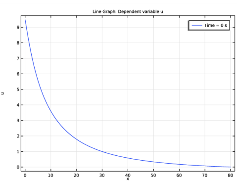 برای مشاهده نمودار u به عنوان نمودار خطی در زمان = 0، مراحل زیر را دنبال کنید.