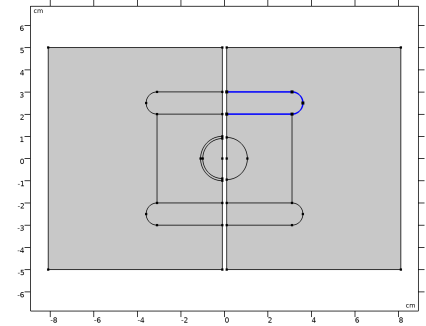هندسه سمت چپ مدل وفاداری کامل را توصیف می کند. هندسه سمت راست به منظور استفاده از ویژگی Thin Low Permittivity Gap، لایه نازک را با یک مرز جایگزین می کند .