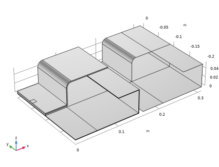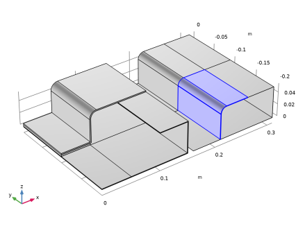 این مدل سازه را هم بر روی نمایش جامد واقعی همانطور که در شکل 1 نشان داده شده است و هم بر روی نمایش پوسته تقریبی در شکل 2 حل می کند . توصیف پوسته از دیدگاه ترسیم هندسی و مش بندی ساده تر است، اما به ویژگی های تخصصی نیاز دارد که گزینه ای برای جفت کردن مواد لایه های مختلف به درستی ارائه می دهد. ترکیبی از چندین اتصال هندسی و تغذیه، همراه با نشان دادن معادل کامل سه بعدی، این مدل را به عنوان مقدمه ای بر جریان های الکتریکی در رابط پوسته های لایه ای مناسب می کند.