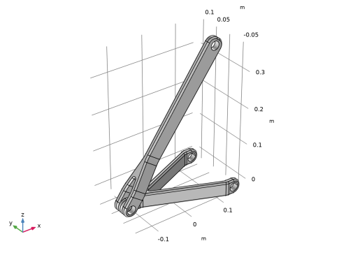 یکی از سوراخ‌های قسمت پایینی دوشاخه‌شده به‌عنوان یک مفصل لولا و سوراخ دیگر به صورت مفصل استوانه‌ای مدل‌سازی می‌شود که امکان حرکت محوری را فراهم می‌کند.