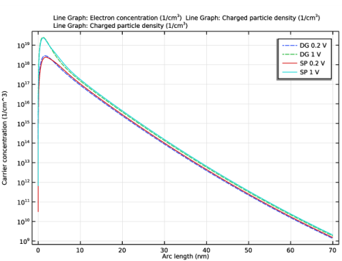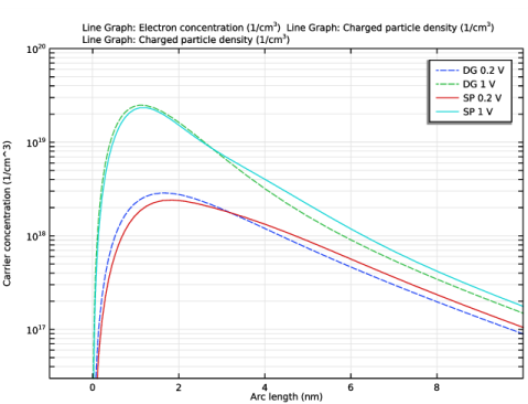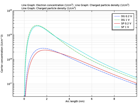 | 2 | در نوار ابزار Electron Concentration Comparison 1 ، روی   Plot کلیک کنید .  |