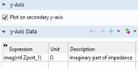 9 | زیر y-Axis Data در ستون Expression، imag(mf.Zport_1) را وارد کنید . در ستون توضیحات قسمت Imaginary امپدانس را وارد کنید . ![]() |