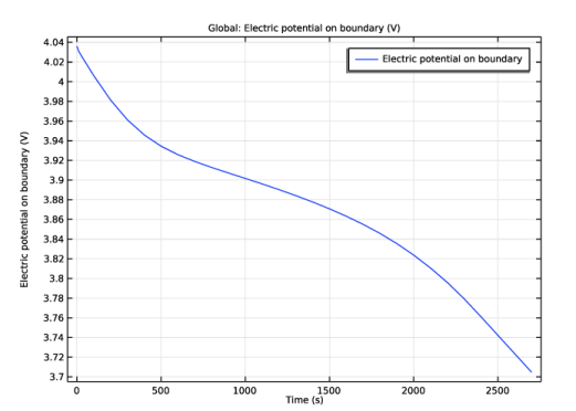 نموداری از ولتاژ الکترود که در آن شرایط جریان الکترود را تنظیم می کنید به طور پیش فرض ایجاد می شود. از آنجایی که الکترود دیگر را زمین کردید، این ولتاژ با ولتاژ باتری در طول شبیه سازی برابر است.