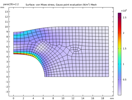شکل 5 و شکل 6 توزیع تنش فون میزس پس از تخلیه را برای دو حالت مش های مثلثی و چهار ضلعی نشان می دهد. با توجه به تفاوت های کوچکی که می توان به انواع مختلف عناصر مش و تفاوت در توپولوژی مش نسبت داد، نتایج یکسان است.
