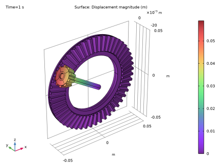 این مدل یک جفت چرخ دنده مخروطی مخروطی مستقیم را شبیه سازی می کند. چرخ دنده ها به صورت سفت و سخت مدل سازی شده اند. یک تحلیل گذرا برای محاسبه نیروها و گشتاورها در مرکز دنده ثابت انجام می شود. این مدل با استفاده از قابلیت چرخ دنده در رابط Multibody Dynamics در COMSOL Multiphysics ساخته شده است.