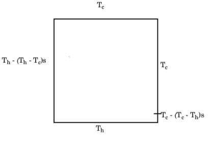 شکل 1: هندسه دامنه و شرایط مرزی برای تعادل حرارتی در مسئله همرفت آزاد. T h دمایی بالاتر از Tc است ، در حالی که s متغیری است که طول نسبی یک بخش مرزی را نشان می دهد و از 0 تا 1 در طول قطعه می رود.