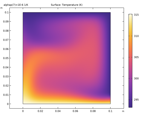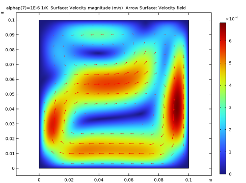 عبارات ساده در معادله 1 و معادله 2 یک مسئله غیرخطی قوی ایجاد می کند که یک کار همگرایی دشوار را برای اکثر حل کننده های غیرخطی نشان می دهد. برای کاهش مشکلات عددی، اجازه دهید ضریب انبساط حرارتی حجمی α p به تدریج افزایش یابد و عدد ریلی آزمایش افزایش یابد. وقتی α p  =  0 باشد ، معادلات تکانه و دما از هم جدا می شوند، بنابراین مثال به راحتی همگرا می شود. سپس α p را با استفاده از راه حل قبلی به عنوان حدس اولیه برای مرحله پارامتری بعدی و به همین ترتیب افزایش دهید تا به عدد ریلی 10 5 برسید.. پروتکل تکرار یک فرآیند آسان با حل کننده پارامتری در COMSOL Multiphysics است.