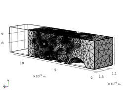 شکل 1 هندسه سه بعدی تولید شده از داده های توموگرافی ( مراجعه 1 ) را با استفاده از روش مدل نشان می دهد. هندسه متشکل از یک حوزه جداکننده، یک حوزه نشان دهنده چسب رسانای متخلخل و تعدادی حوزه ذرات است. نحوه ایجاد هندسه در آموزش تولید هندسه الکترود ناهمگن مستند شده است .
