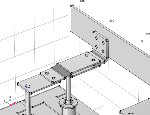 1 | در پنجره Model Builder ، در قسمت Component 1 (comp1)>Geometry 1 ، برای انتخاب Work Plane 7 (wp7) ، Extrude 6 (ext6) ، Work Plane 8 (wp8) ، Extrude 7 (ext7) و Intersection 1 ، Ctrl کلیک کنید. (int1) . |