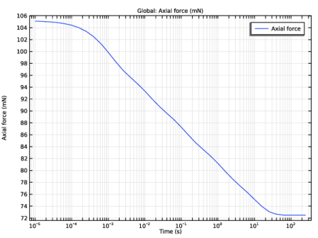 نیروی کل با ادغام تنش محوری در سطح مقطع بالایی محاسبه می شود. نمودار نشان داده شده در شکل 2 شبیه به آرامش نیرو است که در Ref. 2 . نیرو تقریباً به صورت خطی از 10-3 ثانیه تا 10 ثانیه به دلیل دامنه وسیع زمان های آرامش شل می شود  .