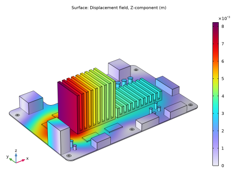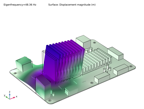 در این مثال، اثر یک بار شوک نیمه سینوسی 50 گرم با مدت زمان 11 میلی ثانیه بر روی مادربرد کامپیوتر با استفاده از دو رویکرد بررسی شده است: تجزیه و تحلیل طیف پاسخ و گام مستقیم زمانی با استفاده از برهم نهی حالت.