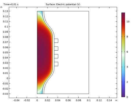 شکل 5: نمودار پتانسیل پلاسما در داخل منبع پلاسما.