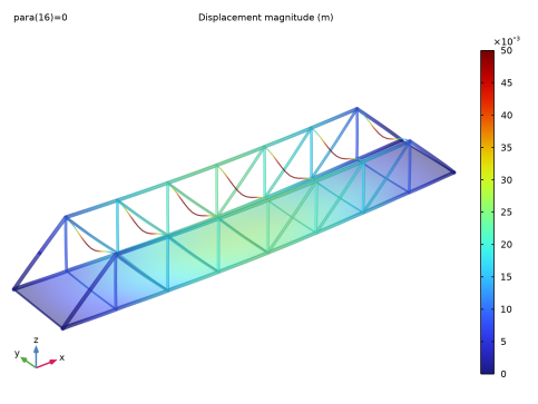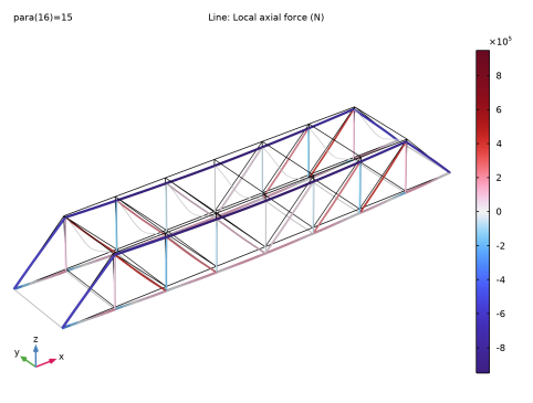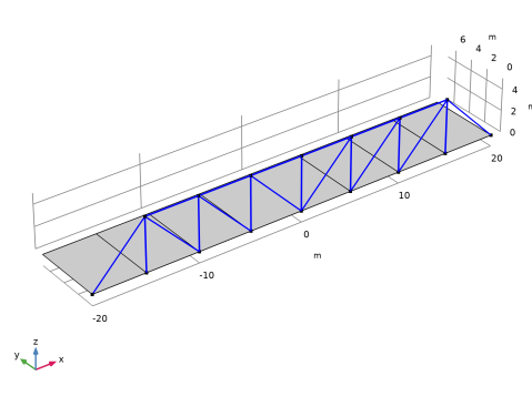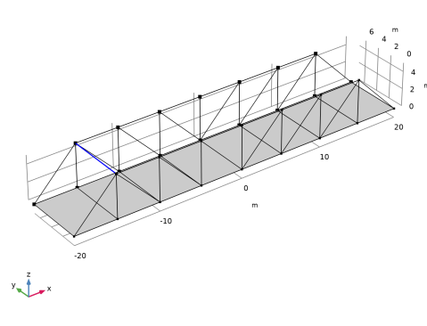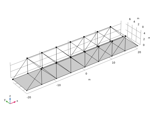 یک سازه خرپایی فقط نیروهای کششی و فشاری را در اعضای خود پشتیبانی می کند و شما معمولاً آن را با استفاده از میله ها مدل می کنید، اما از آنجایی که این مدل از پرتوهای سه بعدی استفاده می کند، تا حدی شامل گشتاورهای خمشی در ساختار قاب نیز می شود . در مدل، عناصر پوسته نمایانگر جاده هستند.
